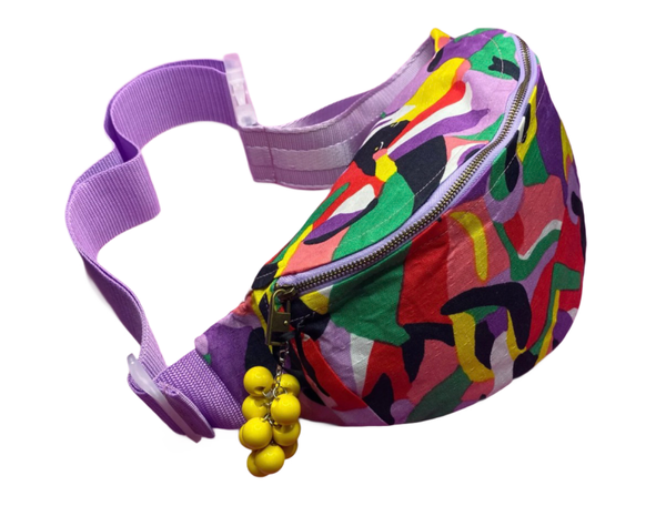 - Bumbagens dragkedja prydds av en handgjord gul bolldetalj i metall och akryl.