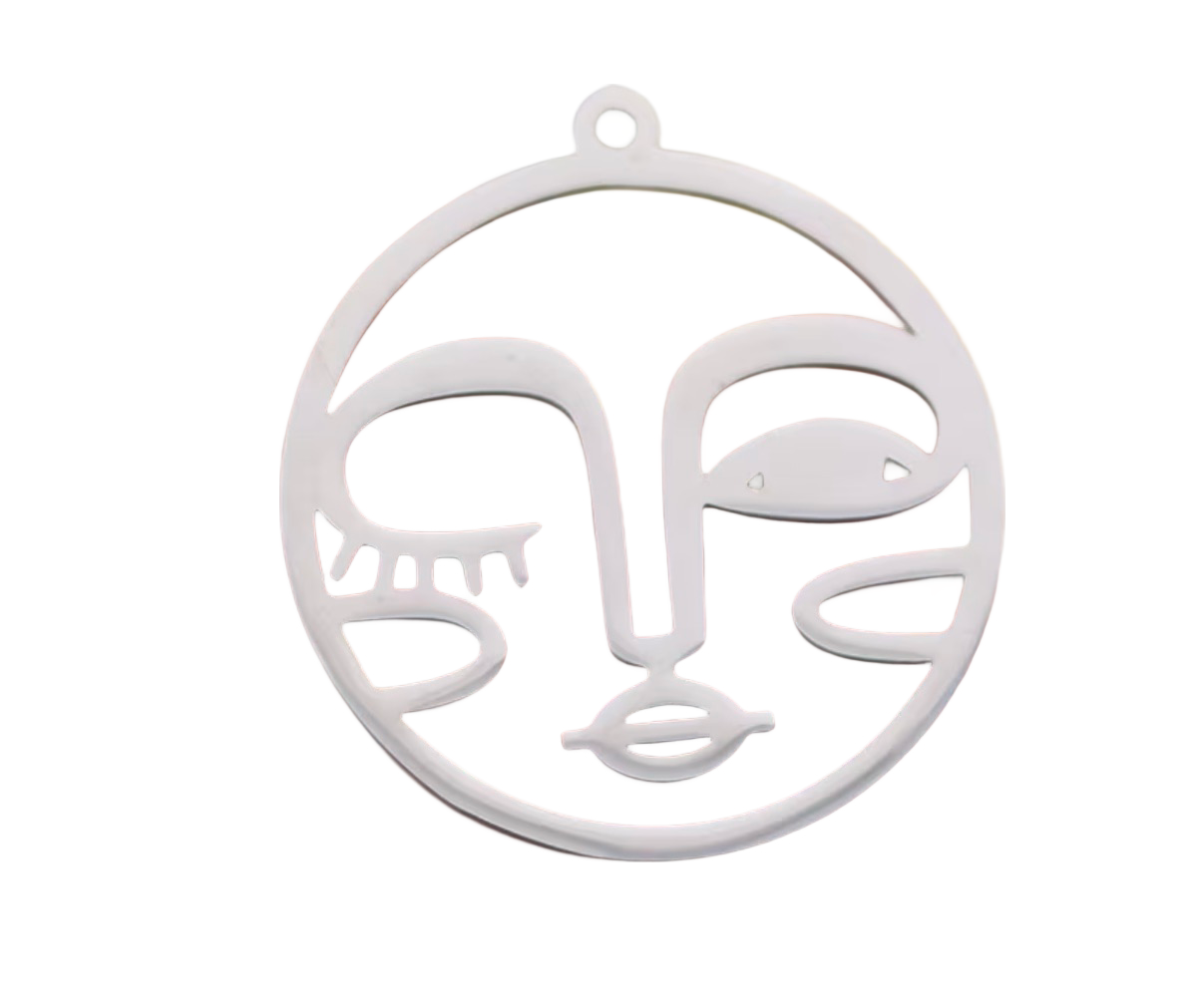 - Dragkedjan prydds av ett ansikte i rostfri metall.
