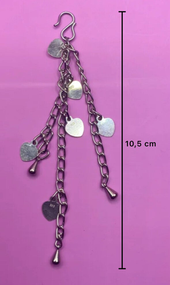 - Dragkedjan prydds av en kedja dekorerad med hjärtan i silver.