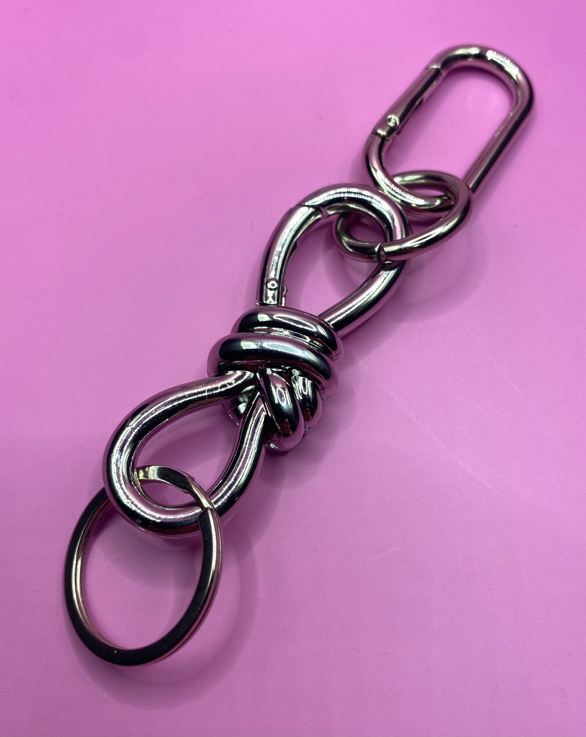 Lyxig nyckelring i zinklegering med vridknutsspänne och hake.