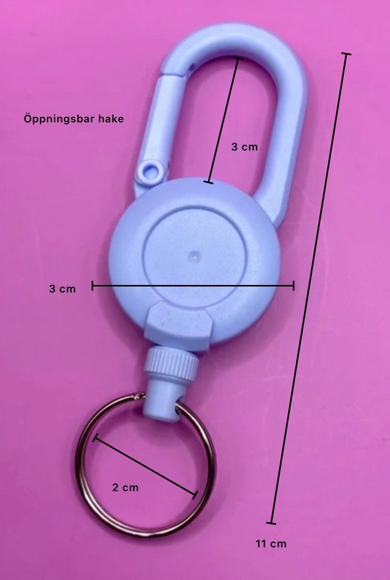 - Tillverkad i hållbar plast med öppningsbar krok samt slitstark draglina i metall.