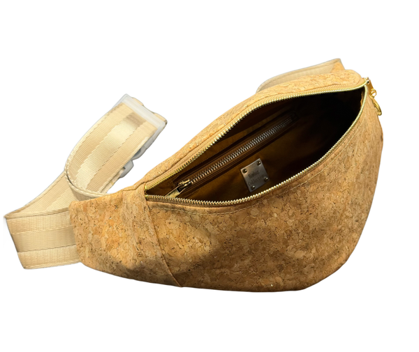 Härlig bumbag i konstläder med struktur och känslan av ett cork underlag med inslag av guld strimlor i vår klassiska modell.